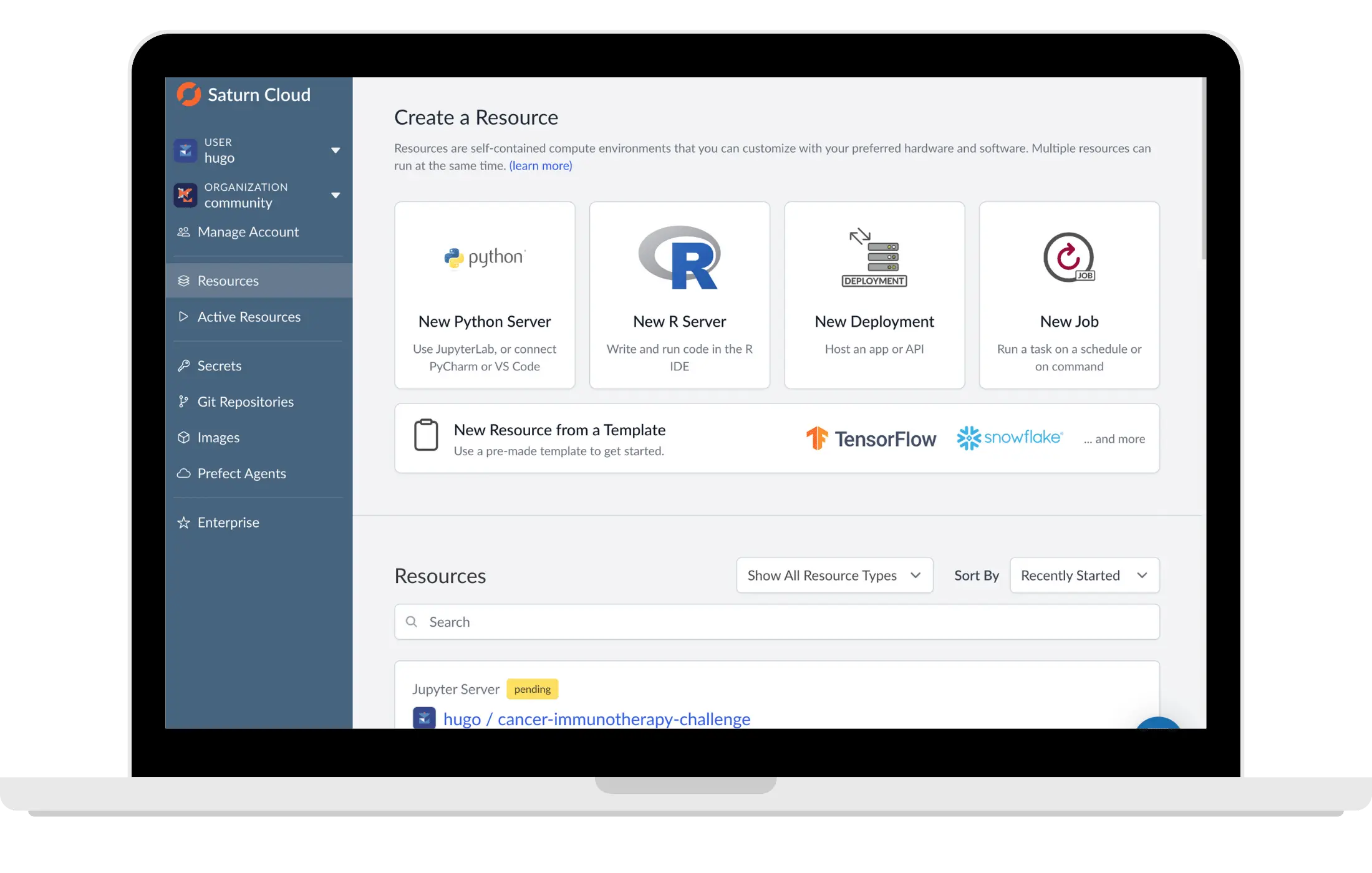 - Adjust your resource size on the fly—if you need more or less compute, memory, or other resources just change the resource settings and restart.